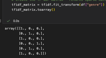 General Trivia: tfidf.fit_tranform(docs) -> leanrs vocabulary and IDF, returns document-term matrix (sparse matrix, shape(# of docs, # of unique words))